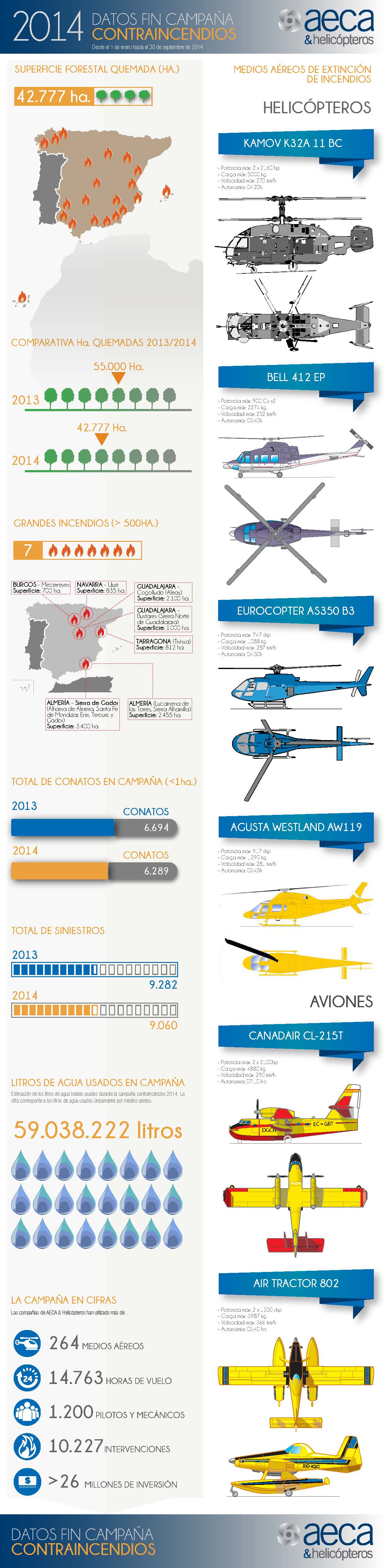 14.000 son las horas de vuelo que los pilotos han realizado durante la campaña de extinción de incendios de este año. Se han llevado a cabo con 264 medios aéreos en 10.227 intervenciones según los datos de la Asociación Española de Compañías Aéreas y Helicópteros (AECA & Helicópteros).