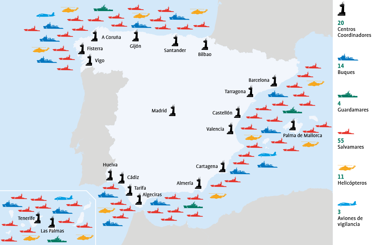 Según el Informe Anual 2014 de Salvamento Marítimo, a lo largo del año pasado atendió un total de 5.041 emergencias, con 14.413 personas involucradas. Sólo los medios aéreos realizaron 3.753 servicios y más de 7.570 horas de vuelo.