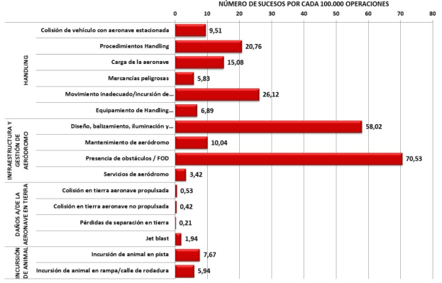 De hecho, en nuestro país en 2015 se alcanzó una tasa de 70,53 sucesos por cada 100.000 operaciones causados por la presencia de obstáculos, la más elevada dentro de la clasificación de incidentes en entornos aeroportuarios según datos de la Comisión de Estudio y Análisis de Notificaciones de Incidentes de Tránsito Aéreo (CEANITA).