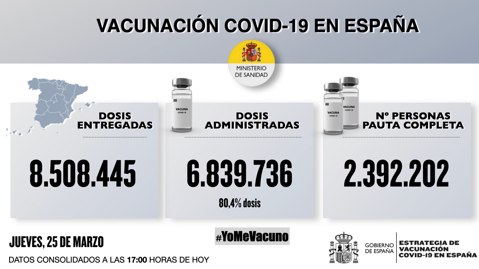 De acuerdo con las cifras presentadas por la presidenta de la Comisión Europea, Ursula von der Leyen, a finales de la semana que viene se habrán distribuido en la UE unos 88 millones de dosis, de las que se habrán administrado 62 millones. En nuestro país, las cifras más recientes hablan de más de 8 millones y medio de dosis entregadas y más de 6.800.000 administradas.