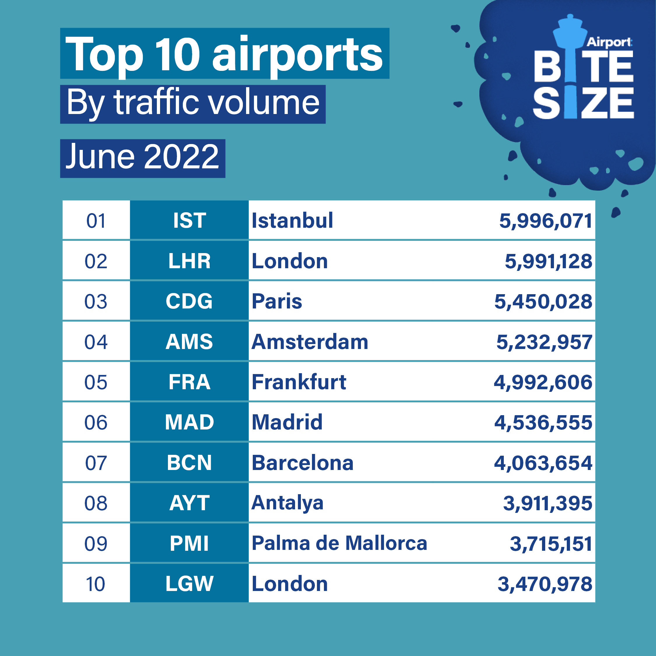 Las cifras así lo indican y nuestro país cuenta con tres aeropuertos entre los diez con mayor tráfico en Europa en el mes de junio, según estos datos de Airports Council International (ACI).